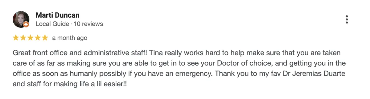 Dr. Jeremias R. Duarte was born and raised in Columbus, Georgia. Dr. Duarte’s medical career began while serving in the U.S. Army as a combat medic and later as a military physician. His military service has included a deployments abroad to include Operation Iraqi Freedom, as well as tours of duty in the Republic of Georgia and Italy. Dr. Duarte graduated magna cum laude from Columbus State University with a Bachelor of Science in Applied Computer Science and a minor in Business. He received his medical degree from the Philadelphia College of Osteopathic Medicine in Suwanee, Georgia. Dr. Duarte completed his internship at Hackensack Meridian Health, Palisades Medical Center, in New Jersey.